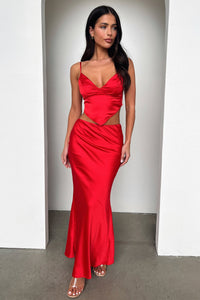 Ready to make a statement? Slip into the Adira Maxi Skirt and you'll be turning heads in no time. With a double lining, invisible zipper, and flowy fit, feel beautiful, comfortable, and confident. Plus, the matching crop top will let you slay your next event!