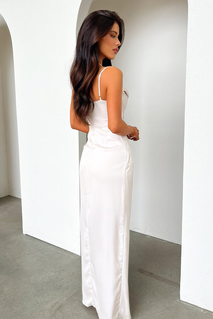 This Aiana Dress is a versatile option for any occasion. Its boning and adjustable straps provide a flattering fit, while the invisible zip ensures a seamless silhouette. The cowl neck detailing adds a touch of elegance. Pair it with heels and gold jewellery for a polished look!