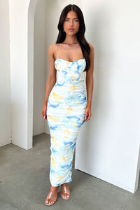 Alberta Ruched Maxi Dress - Blue/Yellow Floral
