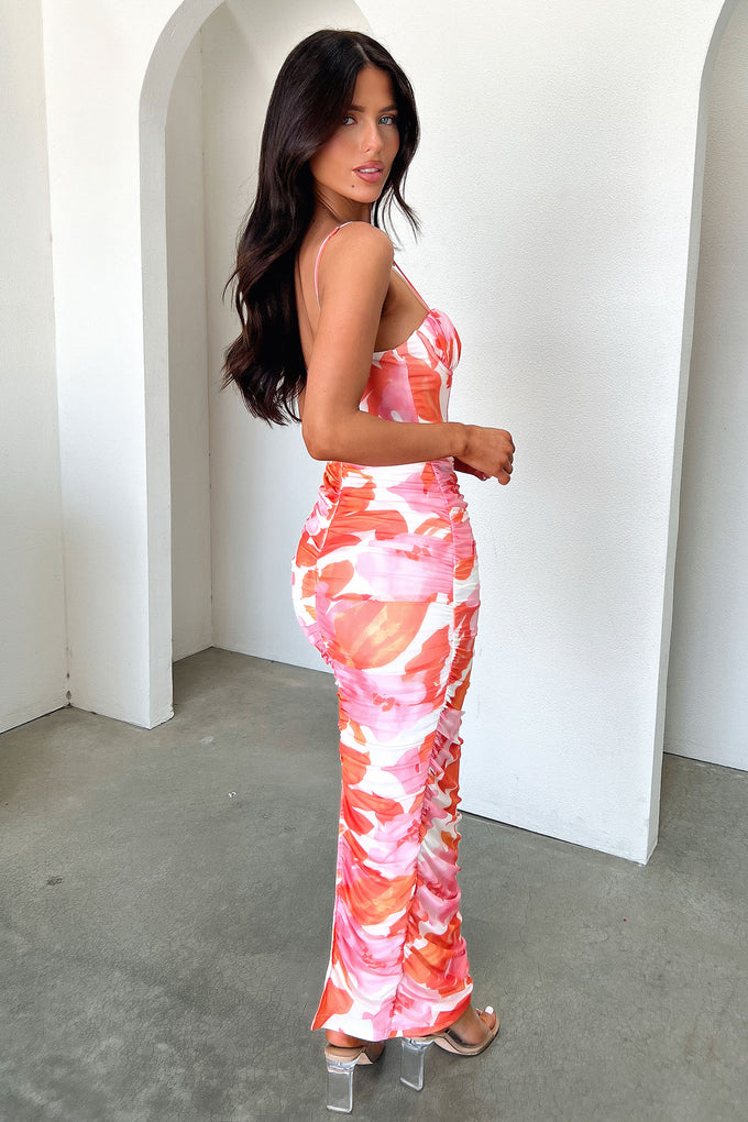 Alberta Ruched Maxi Dress - Pink/Orange Floral