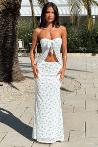 Feel summer-ready in the Amelie Top! This top features silicone grip tape on the inside that keeps it securely in place, while a sheer floral print material will have you looking like a fairy-tale princess. Not to mention the removable tie over the bust giving a unique look. Wear it with the matching maxi skirt and some simple white heels for a showstopping look!