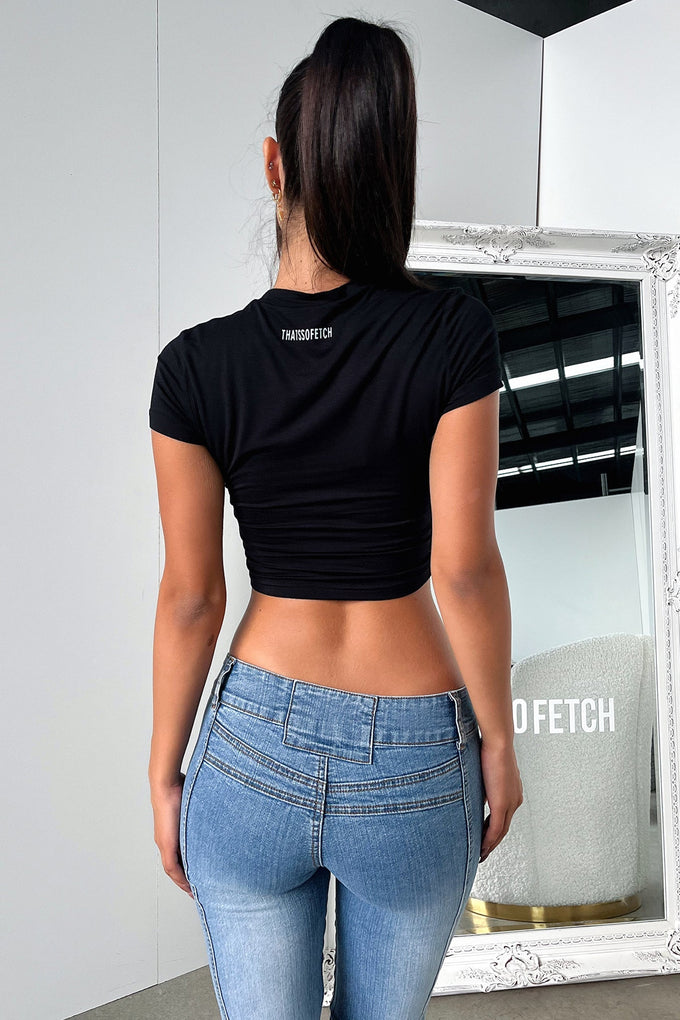 The Amos Baby Tee is the perfect summer staple. Crafted from stretchy and soft fabric, it is designed with a round neckline and short sleeves for optimal comfort and movement. She pairs perfectly with denim shorts and sneakers for a look that is casual and chic.