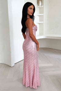 The Annita Maxi Dress is the perfect blend of elegance and fun. Made with shimmering sequin fabric and featuring a leg split, this strapless dress is fully lined and includes an invisible zip with a hook and eye closure for a seamless fit. The silicone tape on the inside of the neckline ensures you can dance all night long without any wardrobe malfunctions. Pair with heels and gold jewellery for a stunning look!