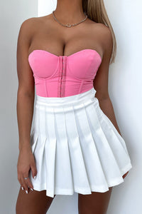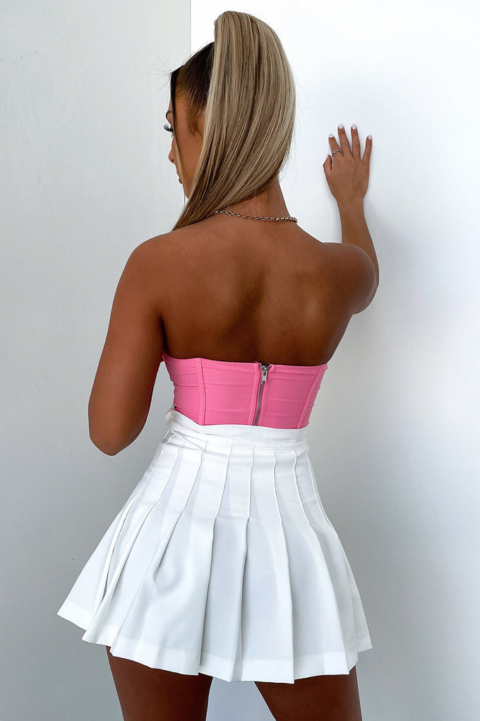 Get a bold update with the HOT in Aura Crop! Featuring a bustier style design with boning details and under bust wiring, a strapless sweetheart neckline and a zip up closure at the back. Pair her with Leather pants and heels for a stylish look!