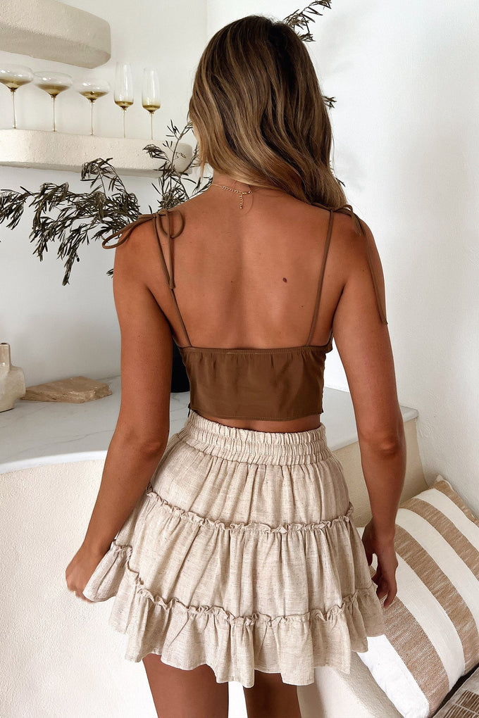 Get ready to slay this spring with the Aviana Crop! This trendy top features an elasticated waist for a comfortable fit, delicate lace trimming along the bust for a feminine touch, and tie up shoulder straps for a unique look. With an invisible side zipper, this crop is perfect for pairing with your favourite jeans for a cute and playful vibe!