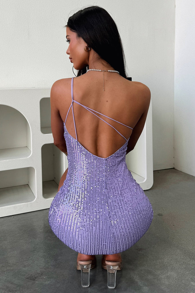 Bethany One Shoulder Sequin Mini Dress - Lilac Sequin