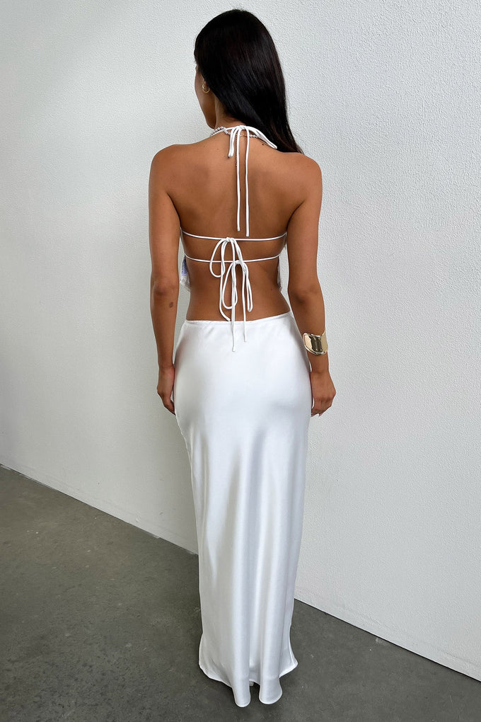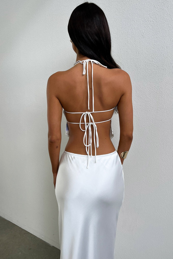 Stay classy and chic in the Carmella Maxi Skirt! Its flowy maxi fit and double lining ensure comfort while the elasticated waistband and loop trim add a touch of style. Perfectly paired with a crop top and gold jewellery for a sophisticated, elegant look!