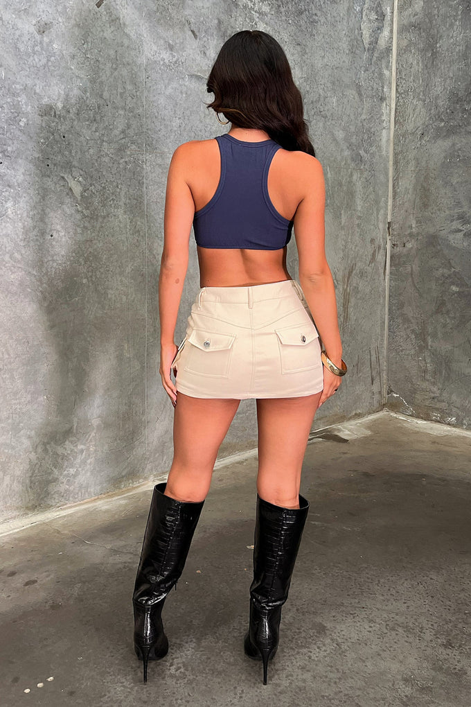 Taking street style to a whole new level in the Carmen Cargo Skort. Featuring cargo style pockets with silver hardware, belt loops around the waist, built in shorts underneath and a mid rise fit. Match with a black baby tee, chunky boots and a pair of sunnies.