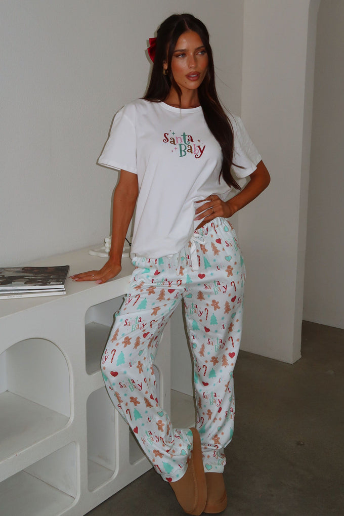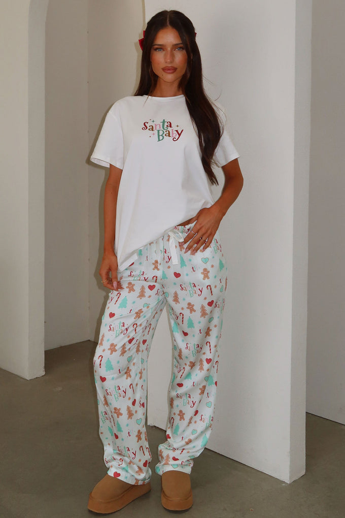 Get ready to sleigh the night away in our Claus Tee! This oversized tee, made with soft material, is part of a matching pyjama set. Featuring a round neckline and a playful "santa baby" print, this tee is perfect for mixing and matching with the Claus pants or shorts for the coziest sleepwear set!