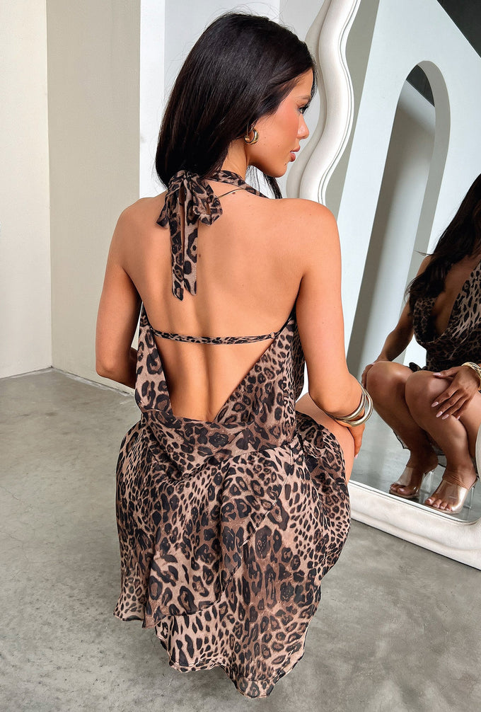 Cleo Plunge Cowl Neck Mini Dress - Leopard