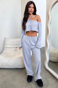 Dana Off Shoulder Long Sleeve Crop - Grey
