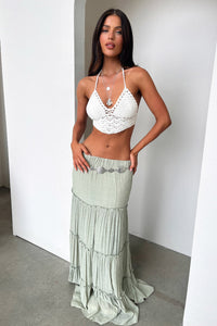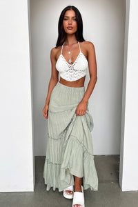 Get ready to elevate your summer wardrobe with the Dunne Maxi Skirt in White. Featuring a flowy fit and double lining, this skirt is ideal for any warm-weather occasion. The elasticized waistband adds comfort and versatility, perfect for styling with a cute crop and sandals for a picnic date!
