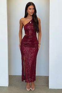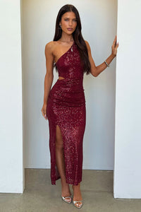 Dura One Shoulder Sequin Midi Dress - Burgundy