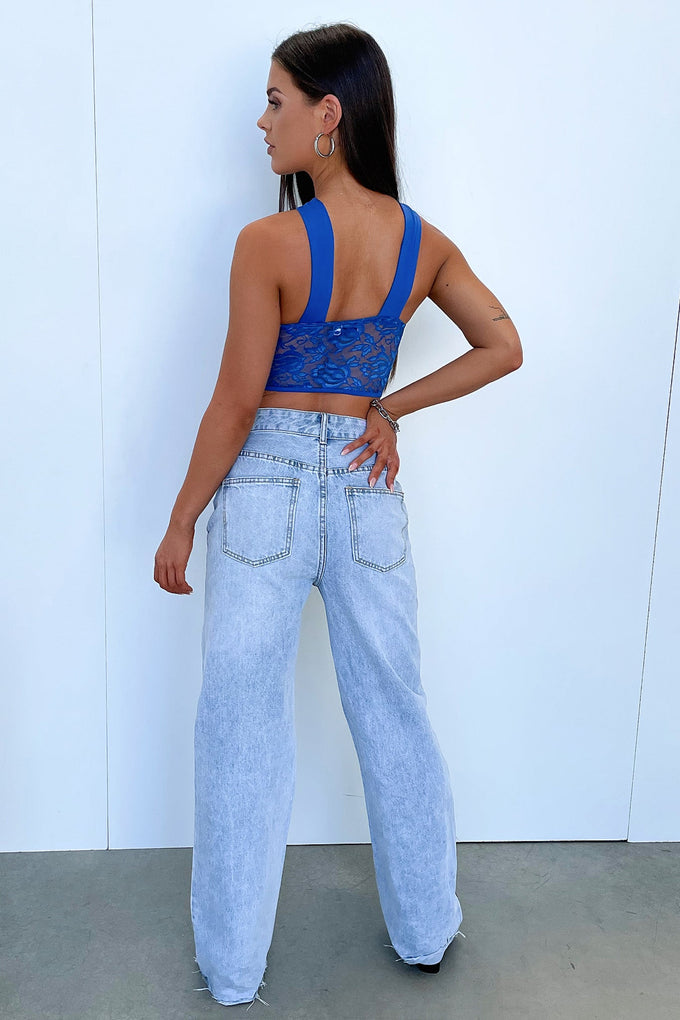 New and upgraded! The East Crop offers under bust wiring, cross over straps at the front forming a cut out design in between the bust, a semi lace body, and double lined material straps. Style this sexy lady with black leather pants, heels and hoops for a banging look on your next night out!
