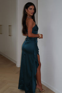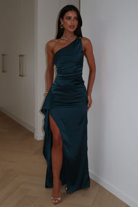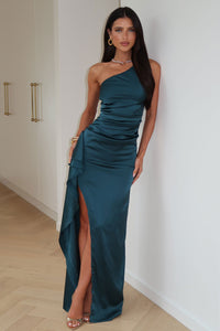 Elianna One Shoulder Satin Maxi Dress - Teal