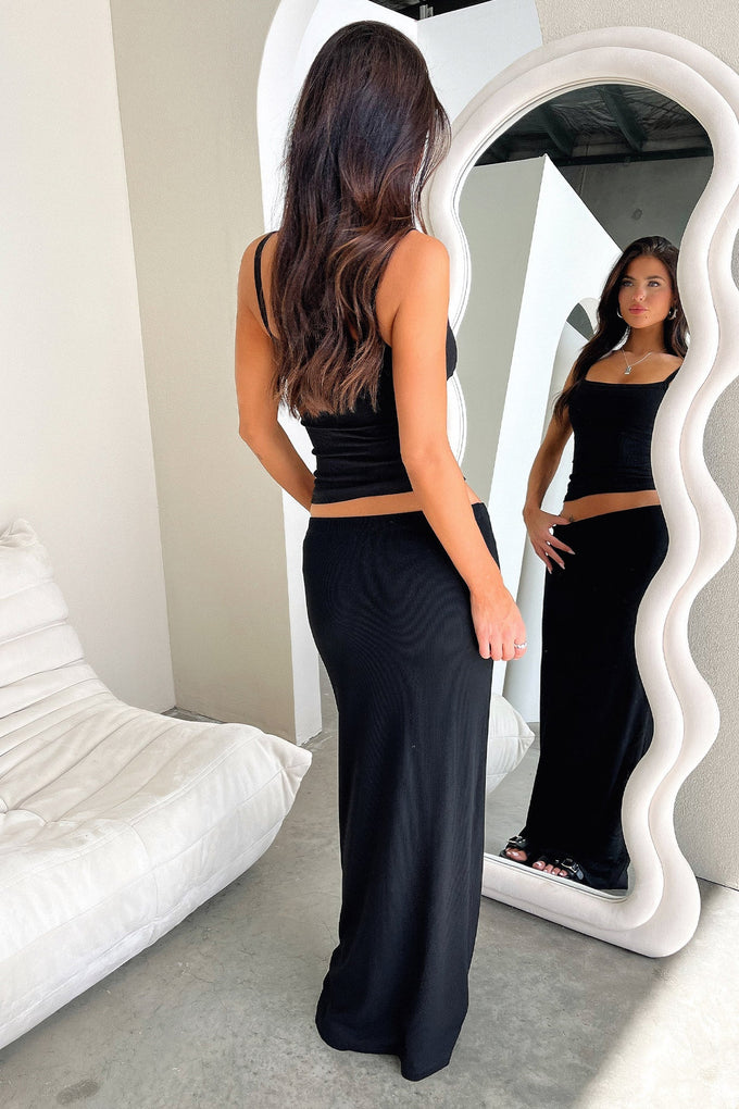 Meet the Fern Maxi Skirt - a versatile addition to your wardrobe! Made from soft and stretchy ribbed material, it features an elasticated waistband and double lining for a comfortable fit. Pair it with a bodysuit and sandals for an elevated daytime fit!