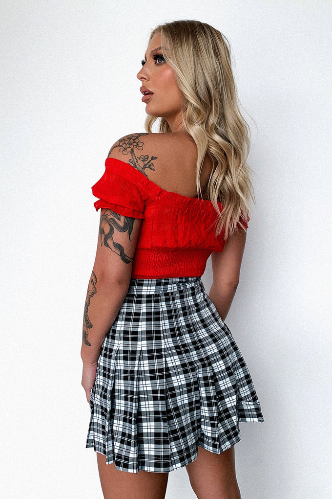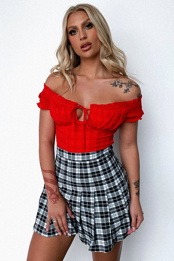 A summer essential that you won't want to miss out on! She's such a vibe, featuring a sweet ruffled neckline with gathered fabrication at the bust, a tie up detail in between the bust, short ruffled sleeves and some super stretchy + comfy fabrication. Match this stunner with your fav white denim shorts , sneaks and a pair of sunnies for a casual laid back look.