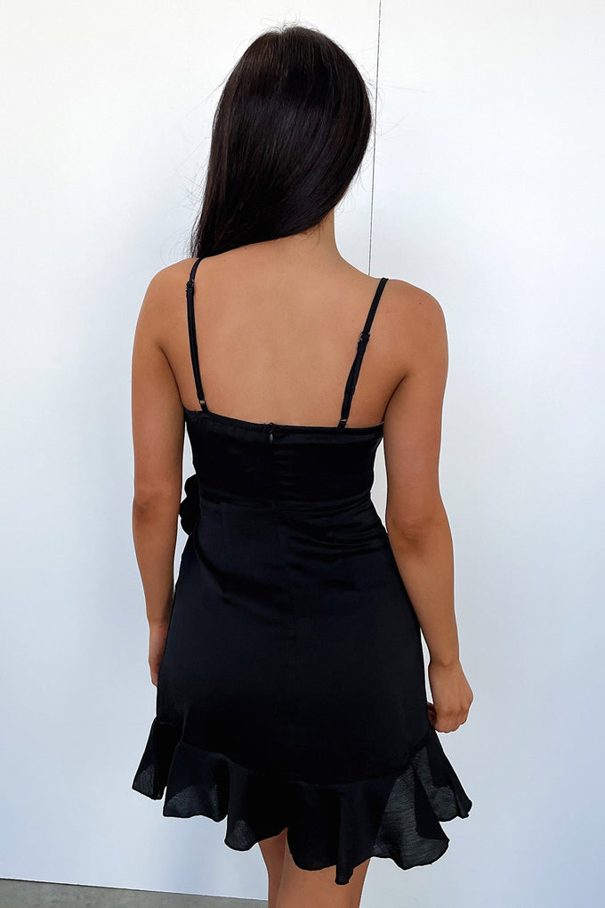 We have got your new little black dress obsession in the Grace Dress in Black. This little silk like number features a straight neckline, thin adjustable straps, a layered ruffled skirt with waist tie, elastic band across the back and invisible zipper for the best fit. You'll be sure to leave an impression if she is styled with your best black stilettos and bold lippy for a effortless date night look.