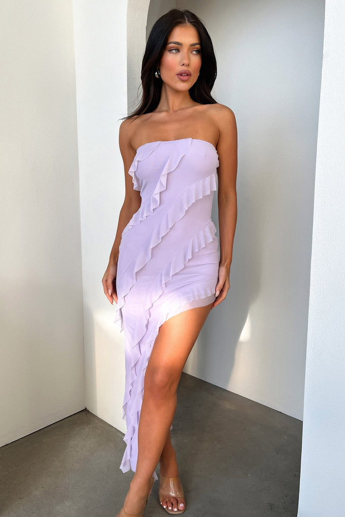 Jadore Strapless Ruffle Midi Dress - Lilac