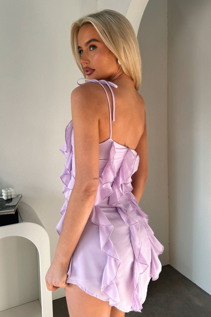 Kansis One Shoulder Ruffle Mini Dress - Lilac