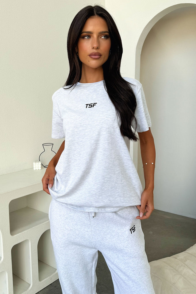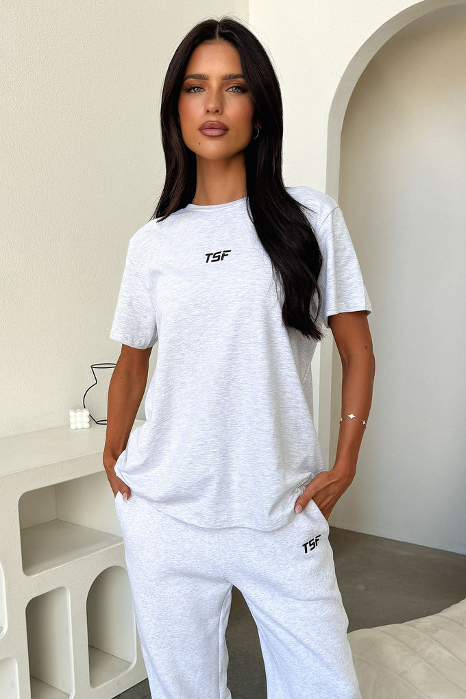 Get ready to lounge in style with the Kaztek Oversized Tee! This short sleeve oversized tee features a slouchy fit and round neckline, perfect for a casual and comfortable look. Made with soft material and embroidered with the TSF logo, it's the ideal basic for both gym cover-up and lazy days. Complete the look with our Kaztek low rise shorts for the ultimate laid-back ensemble!
