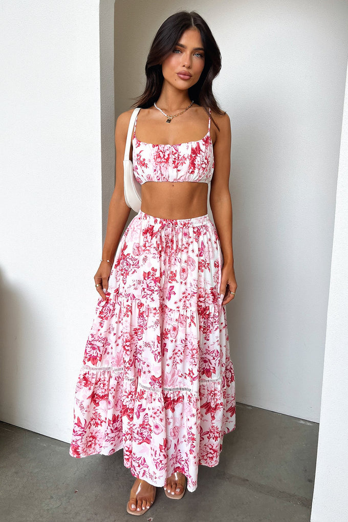Dreaming of summer in the Kei Crop! Featuring adjustable straps, a gathered bust and elastic ruching along the back to ensure the perfect fit. Pair this babe with the matching maxi skirt and cute sandals for the ultimate picnic date fit!