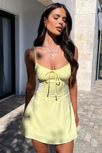 Get ready to turn heads in the Magdalena Dress! This mini dress features thin adjustable straps and a corset-styled top for a flattering fit. The criss cross tie up back and bow detailing add a touch of playfulness. With its double lining and invisible side zip, this dress is both stylish and convenient. Complete the look with your favorite heels and little bag!