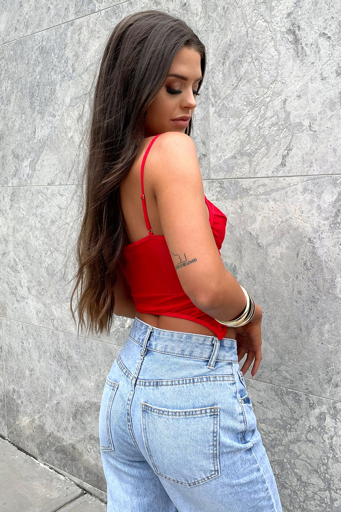 This top is screaming your name! The Meduri Bustier is a banging babe offering lace material, a split design at the waist, under bust wiring, thin adjustable straps and a sheer mesh back. Style this hottie with a white mini skirt, thigh high boots and silver hoops for a hot valentines date!