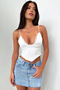 Staple denim you need! She offers a mini fit, belt loops around the waist, a zip + button closure, raw edges and two front and back pockets. Match her with a baby tee and sneakers for a casual look.