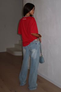 Score style points with this oversized jersey tee featuring a V-neck and bold number detail! The Thats So Fetch logo adds a sporty vibe, making it perfect to pair with sunglasses and denim shorts for a playful, varsity-inspired look!