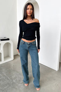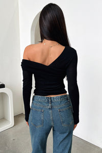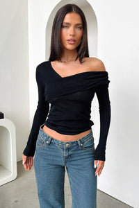 Rochelle Off Shoulder Long Sleeve Top - Black