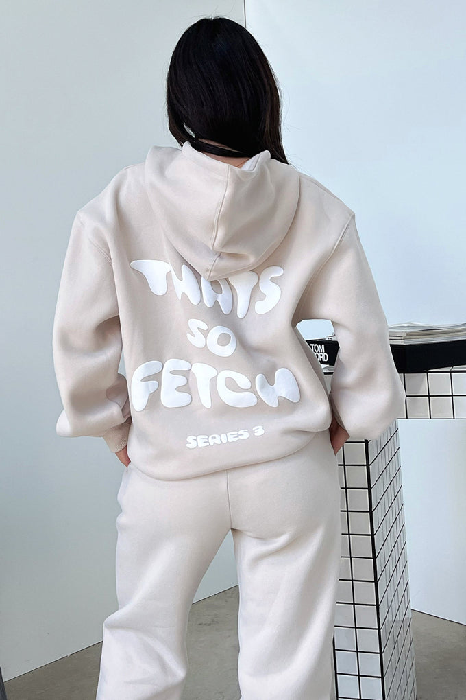 Obsessing over the Series 3 sets! She offers a soft fleece inside, an elasticated waistband, a front pocket and a puffed up 'THATSSOFETCH' logo at the front and back. Pair her with the matching Sweatpants and white runners for an off duty look this winter.