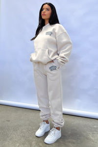 Designed in a creamy, clean neutral tone, this set is all about effortless off-duty style. Made from super-soft fleece and cut in a relaxed, oversized fit, it’s your new go-to for coffee runs, campus days, or chill weekends.
