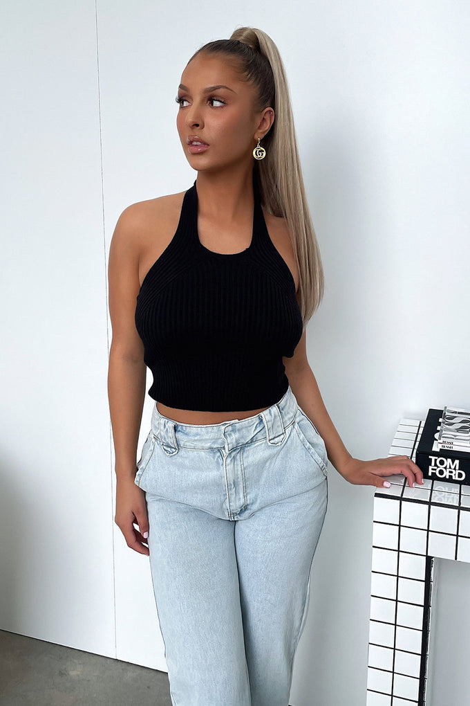 The perfect addition to your knitted collection! Featuring a soft knitted material with lots of room for stretch and a high halter neckline with tie up straps. Pair her with a knitted midi skirt and heels for a classy chic look.