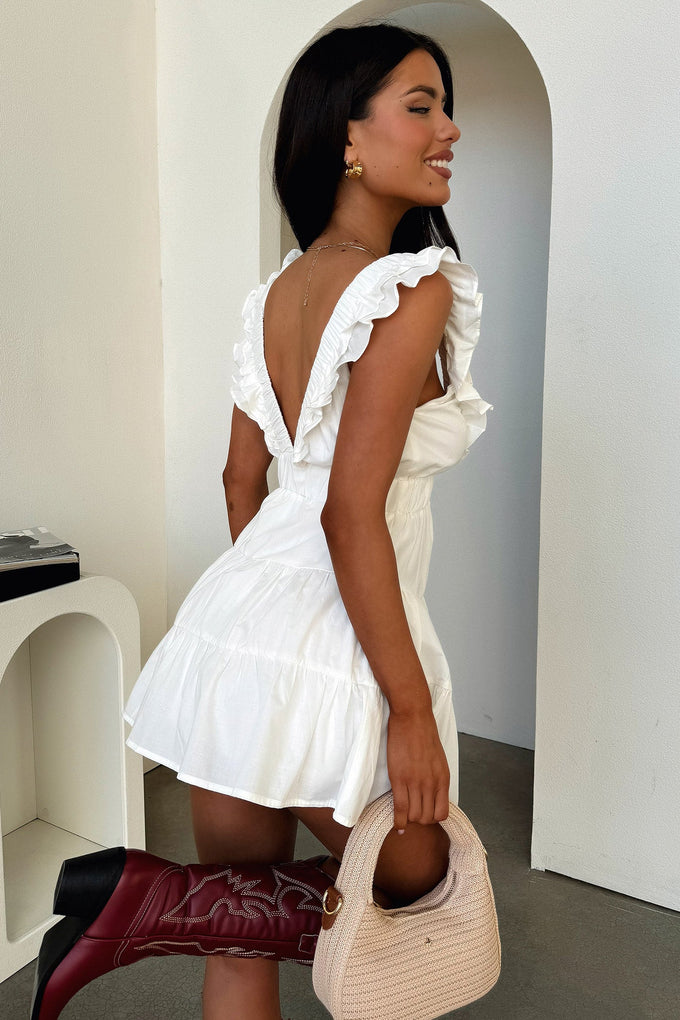 Be the epitome of cute and carefree in our Shaylee Dress! With a flattering v neckline, flowy fit, and charming ruffles on the shoulders, this mini dress is perfect for any occasion. The elasticated shoulder straps and waistband ensure a comfortable fit, while the double lining adds an extra layer of quality. Style with sandals and a headband for a whimsical cottagecore look!