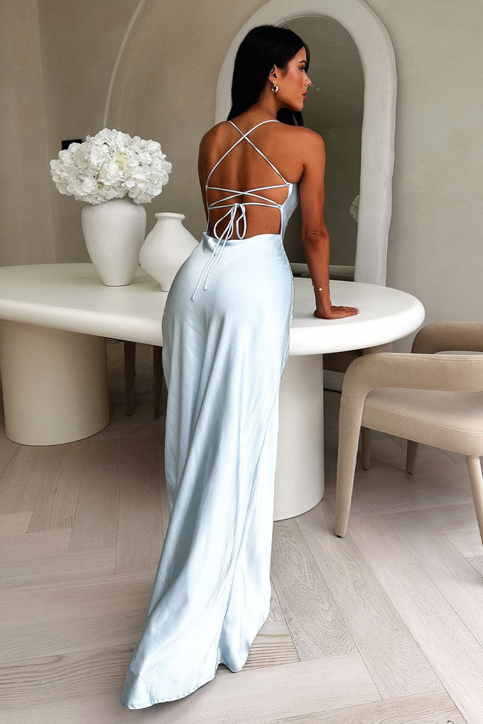 Starlette Cowl Neck Satin Maxi Dress - Blue
