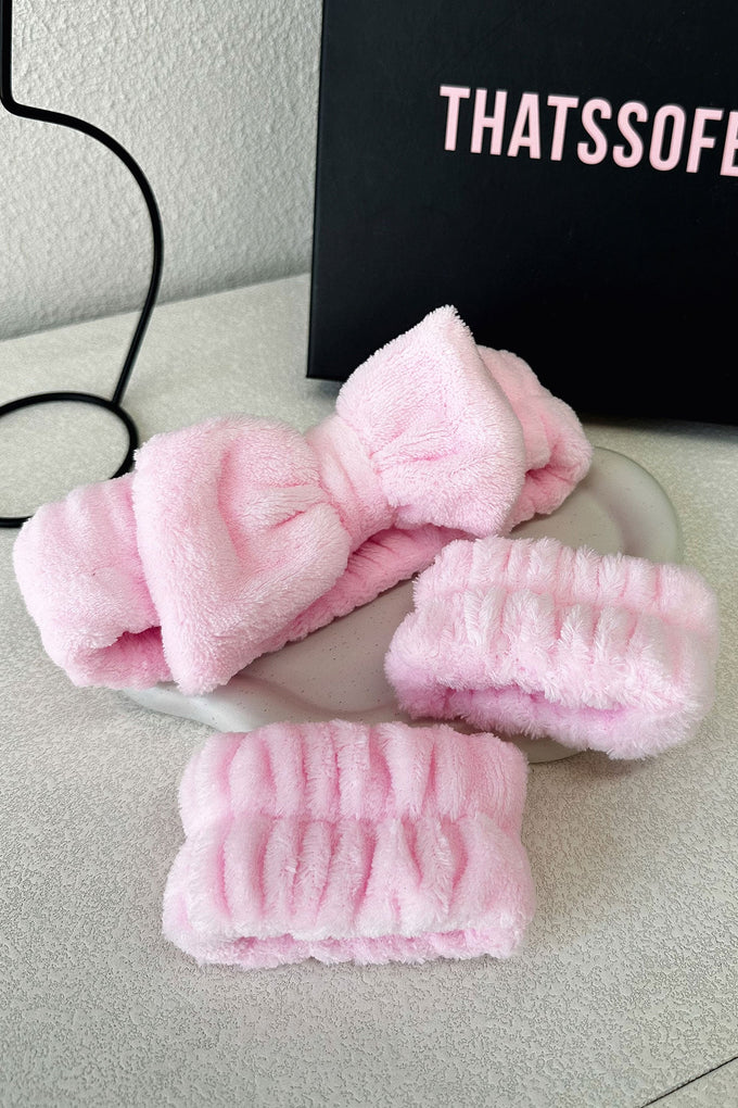 Elevate your beauty game with our TSF Headband and Wristband Set in Pink! Made from soft and fluffy material, these elasticated accessories will keep your hair under control while you slay your makeup looks. Plus, the headband's cute bow adds an extra touch of charm. A must-have for every makeup guru!
