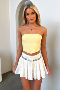 Experience ultimate comfort and style with our Tullie Skirt! Made from flowy linen, this mini skirt is double lined for a flattering fit. The adjustable waistband and front tie offer the perfect amount of customization. Pair with a cute crop top and sandals for a chic and effortless beachy holiday look!