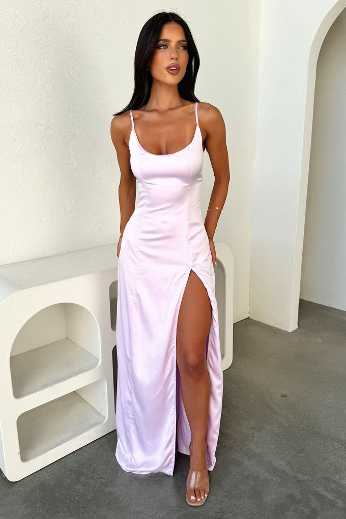 Violetta Scoop Neck Satin Maxi Dress - Pink