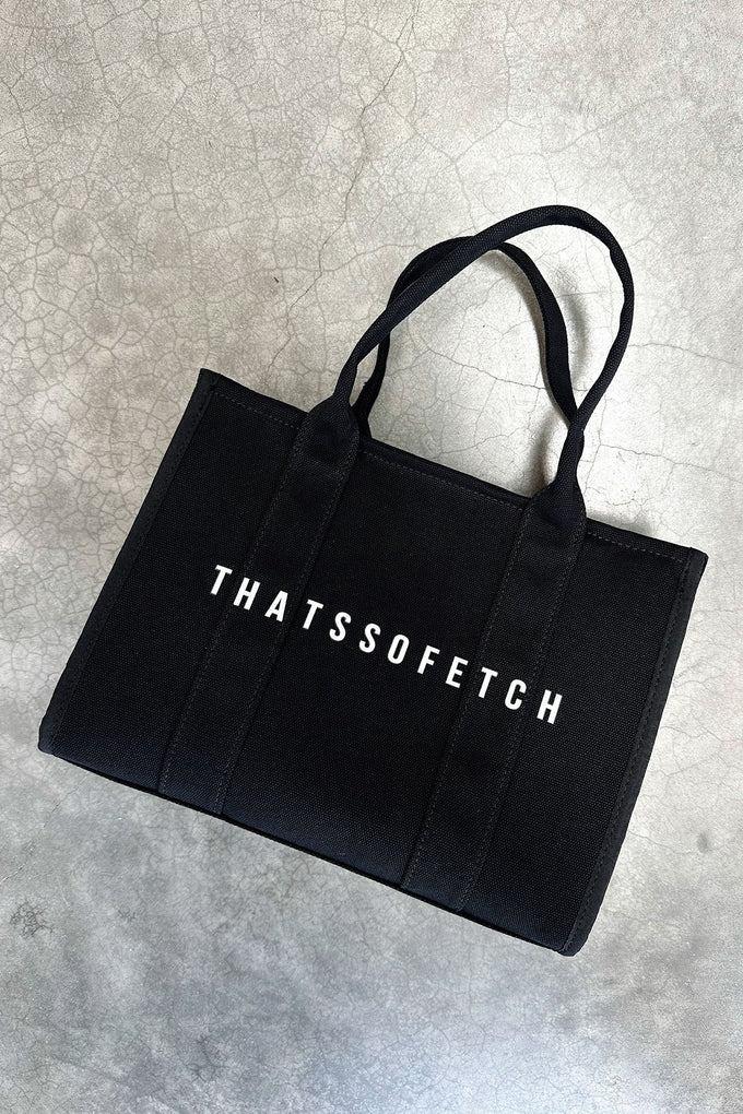Introducing the Xenia Small Tote Bag! Made from durable canvas fabric, this bag features a THATSSOFETCH logo, zip closure, internal zip and pockets, and small straps for easy carrying. Perfect for any occasion, this playful and quirky bag will be your go-to accessory with its thick fabric and stylish gold accents!